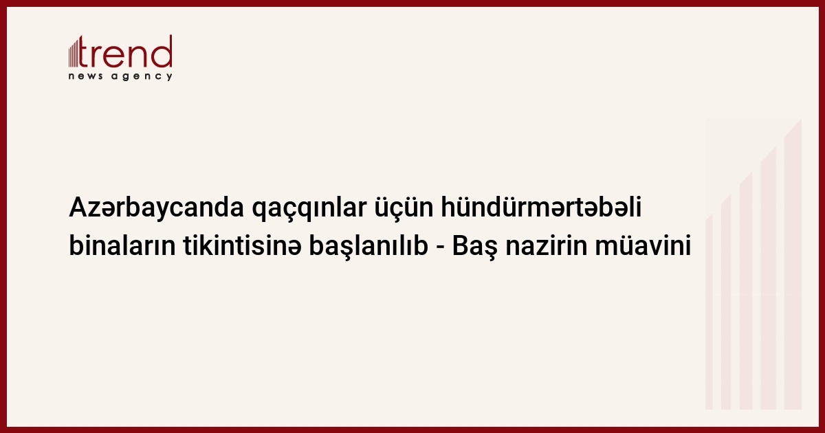 Bu il qaçqınlar üçün hündürmərtəbəli binaların tikintisinə başlanılıb. Trend-in məlumatına görə, bu barədə cümə axşamı jurnalistlərə Baş nazirin müavini, Qaçqınların və Məcburi Köçkünlərin İşləri üzrə Dövlət Komitəsinin sədri Əli Həsənov deyib.