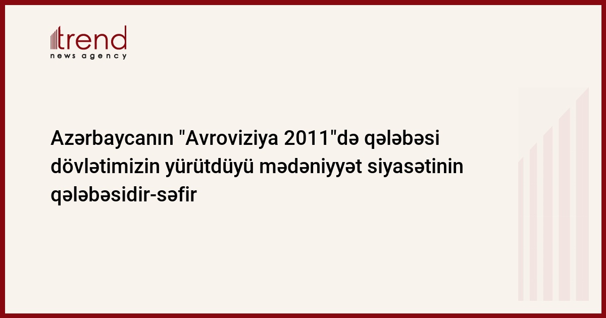 Azərbaycanın "Avroviziya 2011"də qələbəsi dövlətimizin yürütdüyü mədəniyyət siyasətinin qələbəsidir, bunu bazar günü Trend-ə Azərbaycanın Macarıstandakı səfiri Vilayət Quliyev deyib.