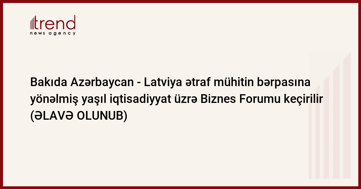 Bakıda bazar ertəsi Azərbaycan - Latviya ətraf mühitin bərpasına yönəlmiş yaşıl iqtisadiyyat üzrə Biznes Forumu işə başlayıb.