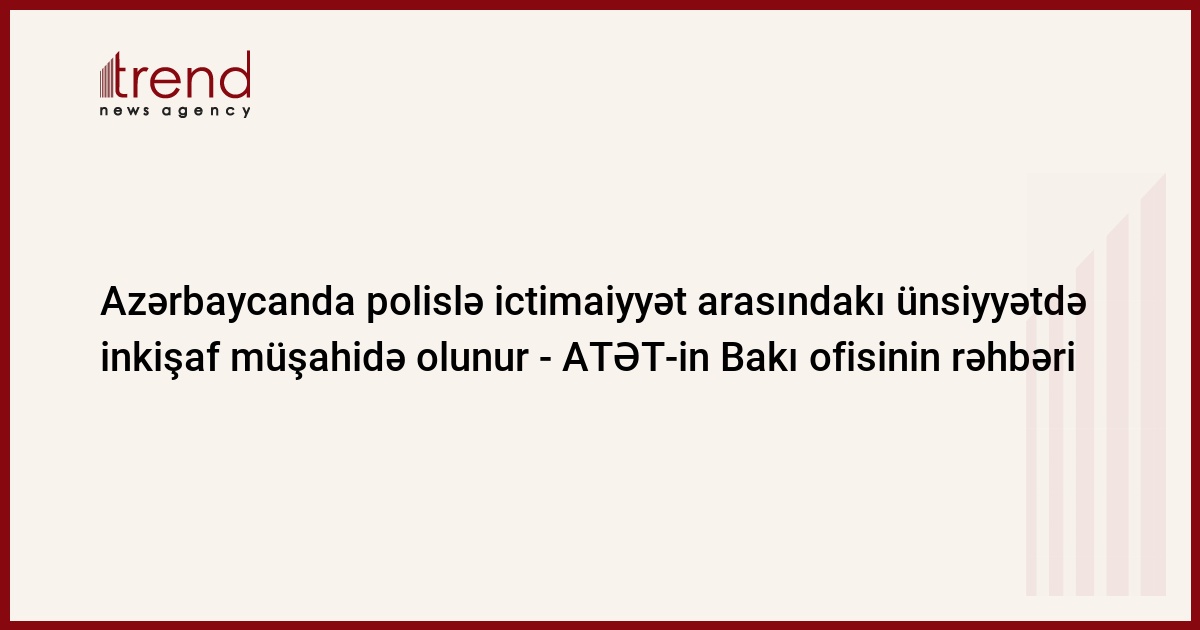 Azərbaycanda cəmiyyət tərəfindən dəstəklənən polis layihəsinin icrası nəticəsində polislə ictimaiyyət arasında ünsiyyətdə nəzərəçarpacaq inkişaf müşahidə olunur. Trend-in məlumatına görə, bunu "Cəmiyyət dəstəkli polis işinə dair Beynəlxalq Konfrans"da çıxışında ATƏT-in Bakı ofisinin rəhbəri Əli Bilgə Cankorel bildirib.