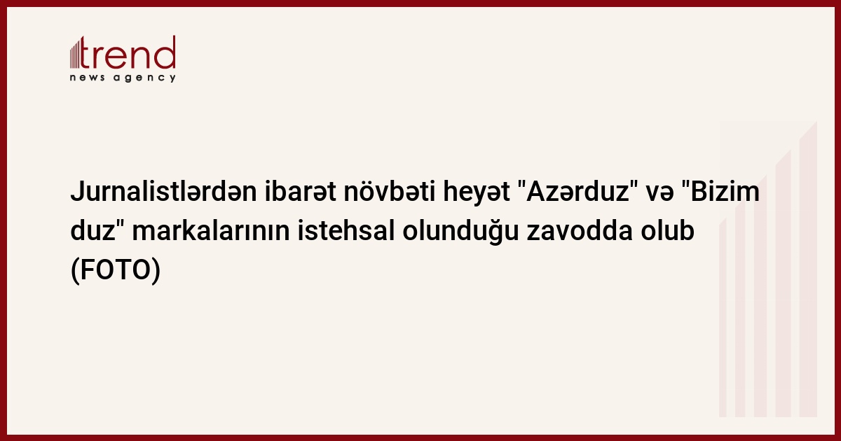 Jurnalistlərdən ibarət növbəti heyət "Azərduz" və "Bizim duz" markalarının istehsal olunduğu Masazır Duz Zavodunda olub.