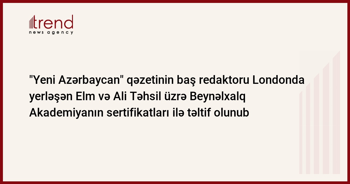 "Yeni Azərbaycan" qəzetinin baş redaktoru, siyasi elmlər üzrə fəlsəfə doktoru Hikmət Babaoğlu Londonda yerləşən Elm və Ali Təhsil üzrə Beynəlxalq Akademiyanın "Elmi təhlil üzrə dünya, qitə, milli və regional birincilik" layihəsi çərçivəsində keçirilmiş "İnsan cəmiyyətinin müasir inkişaf problemləri" III və "İnsan cəmiyyətinin özünütəşkil formalarının inkişafı və təşkili problemləri" IV beynəlxalq elmi-praktik konfranslarında iştirak edib.