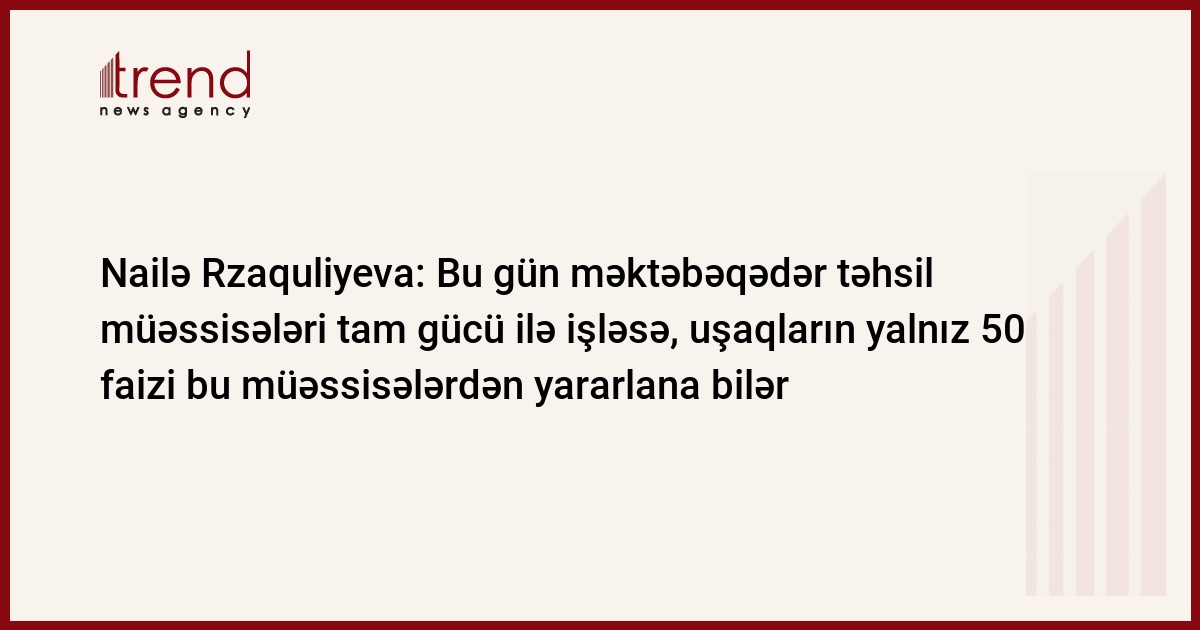"Bakıda məktəbəqədər yaşlı uşaqların yalnız 50 faizi - 52 min uşaq məktəbəqədər təhsil müəssisəsinə gedə bilər", - Rzaquliyeva əlavə edib.