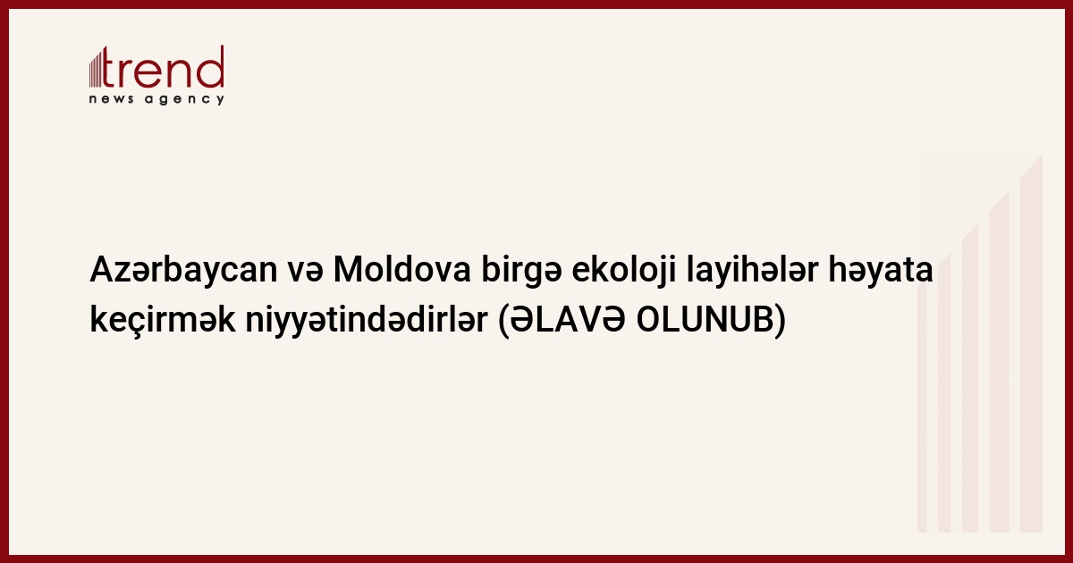 Azərbaycan və Moldova ekologiya sahəsində müştərək layihələri müzakirə edəcəklər. Trend-in məlumatına görə, bu barədə cümə axşamı jurnalistlərə Moldovanın ətraf mühit naziri George Şalaru deyib.