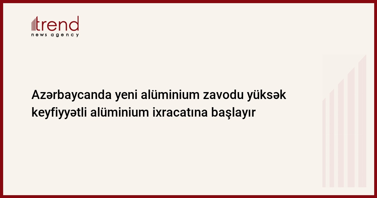 Noyabrda "DETAL AZE" ticarət nişanlı yüksək keyfiyyətli A-7 markalı alüminium külçələri satış məqsədilə dünya bazarına çıxarılacaq.