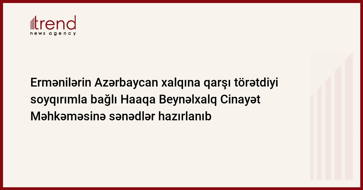 Azərbaycan Milli Elmlər Akademiyasının (AMEA) Tarix İnstitutu ermənilərin Azərbaycan xalqına qarşı törətdiyi soyqırımlarla bağlı Haaqa Beynəlxalq Cinayət Məhkəməsinə təqdim olunması üçün istintaqı aparılacaq sənədləri hazırlayıb. Bu barədə şənbə günü Trend-ə AMEA Tarix İnstitutunun direktoru, millət vəkili Yaqub Mahmudov bildirib.