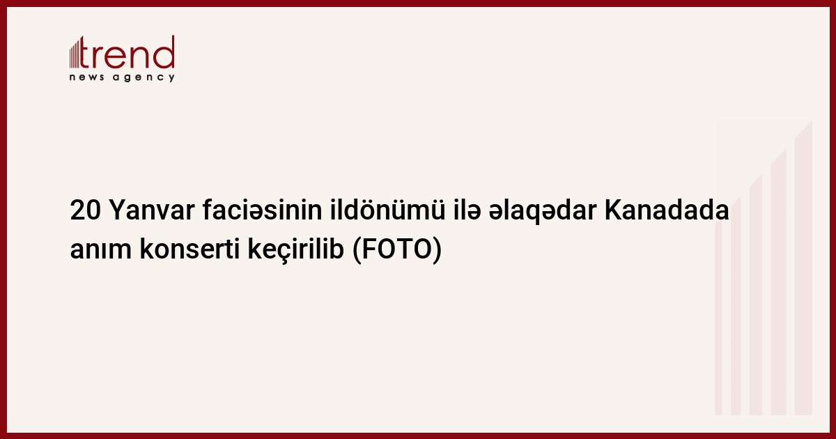 Bu gün 20 Yanvar faciəsinin ildönümü ilə əlaqədar Azərbaycanın Kanadadakı səfirliyi tərəfindən Ottavada anım konserti keçirilib.