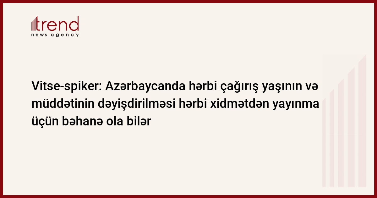 Hərbi qanunvericiliyə hərbi çağırış yaşının və müddətinin dəyişdirilməsi ilə bağlı dəyişikliklərin edilməsi hərbi xidmətdən yayınma üçün bəhanə ola bilər. Trend-in məlumatına görə, bunu Milli Məclisin vitse-spikeri Bahar Muradova bazar ertəsi parlametin ötən ilin yekunları və 2012-ci ilin yaz sessiyasının qanunvericilik planları ilə bağlı mətbuat konfransında bildirib.