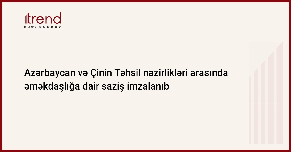 Azərbaycan Təhsil Nazirliyi ilə Çin Təhsil Nazirliyi arasında 2012-2015-ci illərdə təhsil sahəsində əməkdaşlığa dair saziş imzalanıb. Trend-in məlumatına görə, sazişi təhsil naziri Misir Mərdanov və Çinin ölkəmizdəki səfiri Xun Suin imzalayıblar.