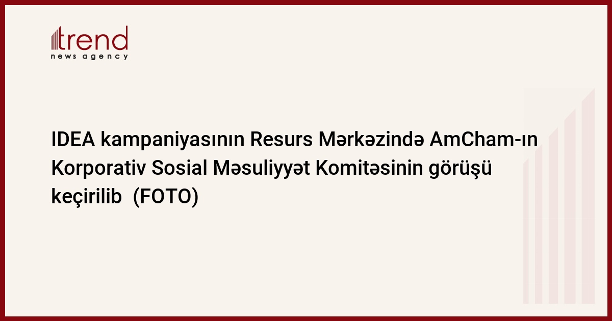 Ətraf mühitin mühafizəsi işini rəhbər tutaraq fəaliyyəti ilə ictimai həyatın müxtəlif sahələrini əhatə edən IDEA Kampaniyası bu dəfə biznes sahəsinə də öz "yaşıl" töhfəsini verməyə başlayır. Belə ki, 13 dekabr tarixində Amerika Azərbaycan Ticarət Palatasının (AmCham) Korporativ Sosial Məsuliyyət (KSM) Komitəsi ilk dəfə olaraq başqa bir təşkilatın məkanında - məhz IDEA Kampaniyasının Resurs Mərkəzində öz toplantısını keçirdi.