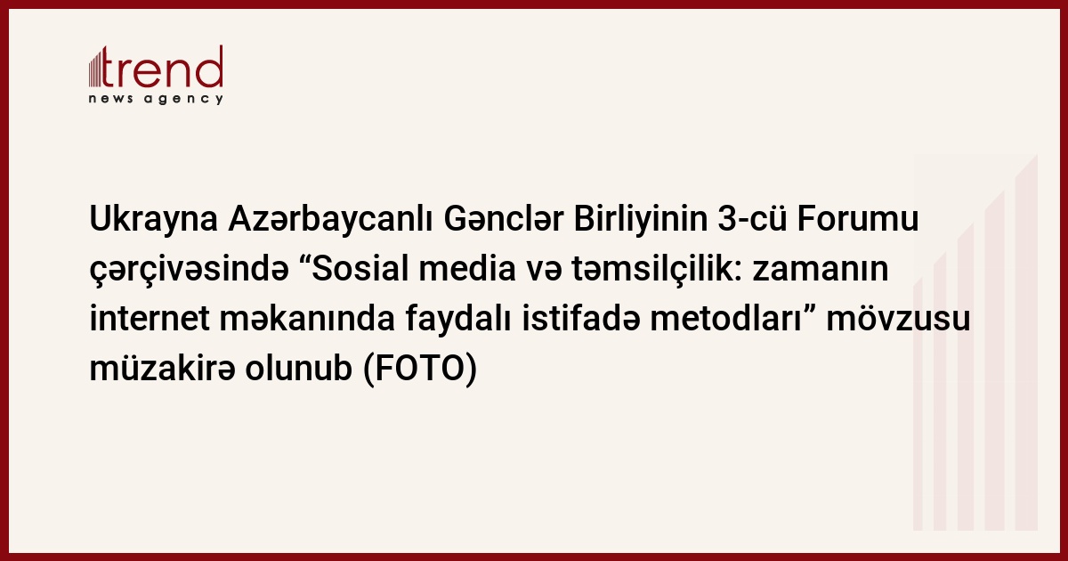 Ukrayna Azərbaycanlı Gənclər Birliyinin 3-cü Ümumukrayna Forumu çərçivəsində "Sosial media və təmsilçilik: zamanın internet məkanında faydalı istifadə metodları" mövzusunda da panel keçirilib. Trend-in məlumatına görə, panelə Ukrayna Azərbaycanlı Gənclər Birliyinin sədri Anar Tahirov moderatorluq edib.