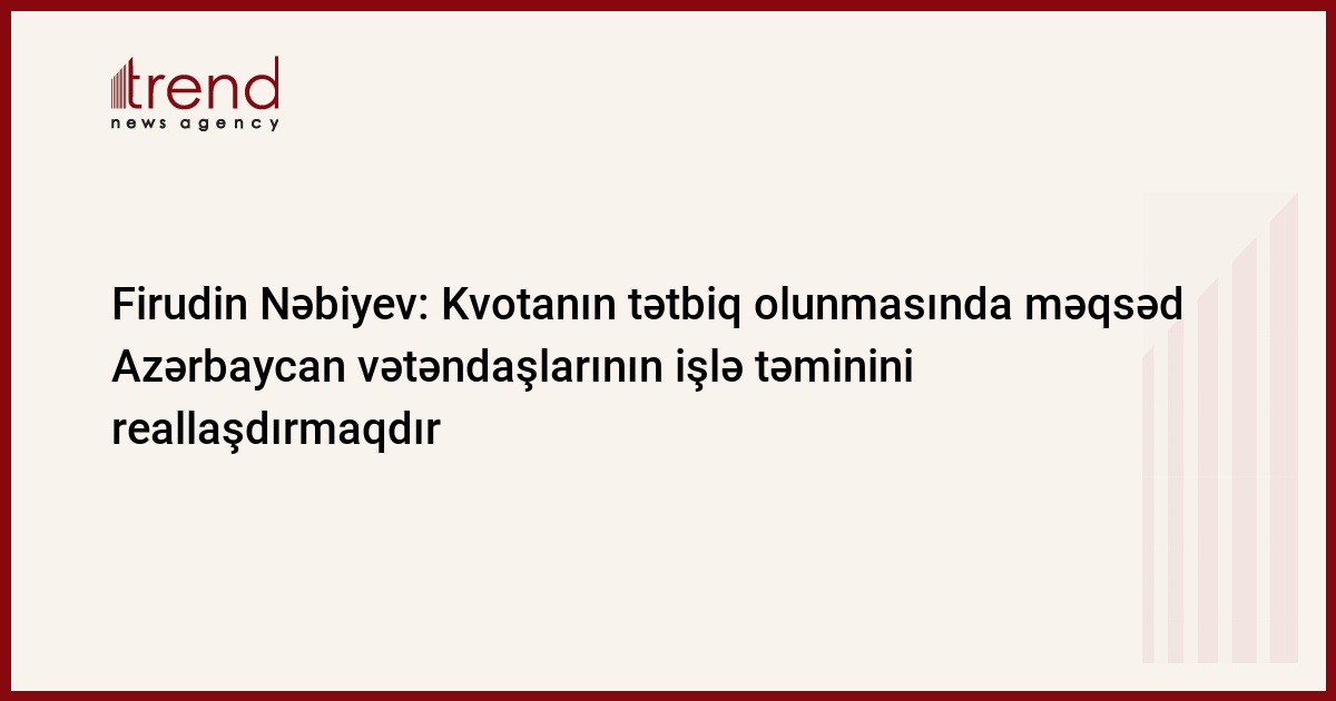 Kvotanın tətbiq olunmasında məqsəd, ilk növbədə, Azərbaycan vətəndaşlarının işlə təminini reallaşdırmaqdır: "İlk növbədə, Azərbaycan vətəndaşlarını işlə təmin etmək lazımdır. Bundan sonra bəzi xüsusi ixtisaslar istisna olmaqla xarici vətəndaşlar işə cəlb oluna bilər. Kvotanın da müəyyən edilməsinin məqsədi budur".