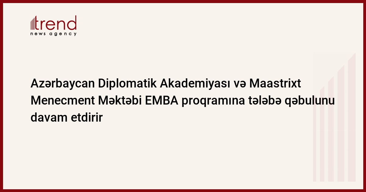 Azərbaycan Diplomatik Akademiyası (ADA) və Maastrixt Menecment Məktəbi (MSM) peşəkarlar üçün biznesin idarə olunması üzrə beynəlxalq səviyyəli Ekzekyutiv MBA (EMBA) proqramına tələbə qəbulunu davam etdirir.