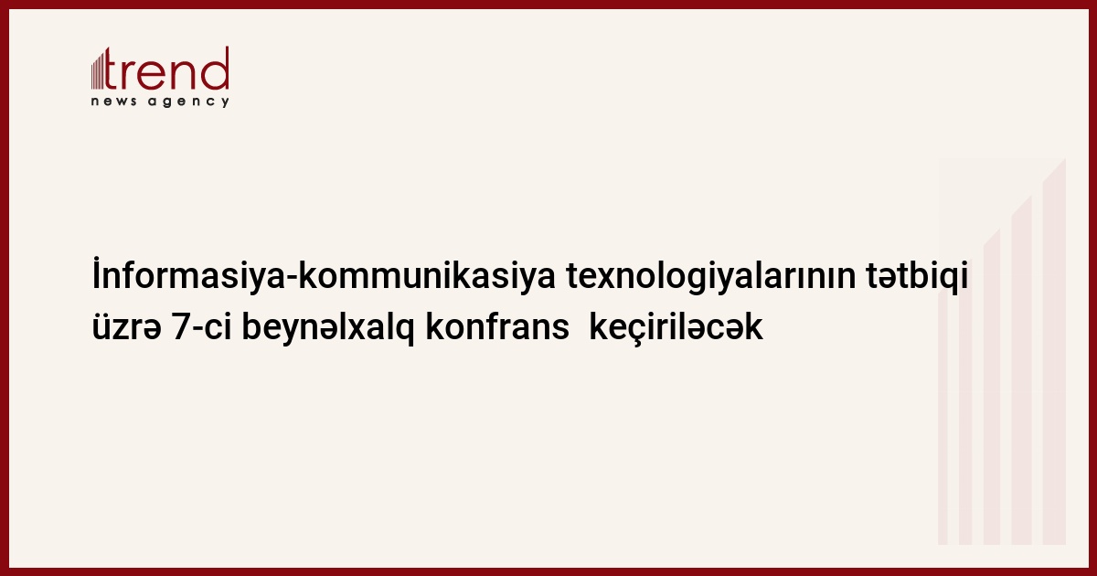 7-ci Beynəlxalq Konfransı Azərbaycan Respublikası, Bakı şəhərində 09-11 oktyabr 2013-cü il tarixlərində keçiriləcəkdir. AICT2013 Beynəlxalq Konfransı İKT-nin təhsildə və təlimdə, elm və tədqiqatlarda, idarəetmədə, təhlükəsizlikdə, səhiyyə sistemində, dövlət strukturlarında, kommunikasiya və rabitə sahəsində yeni və keyfiyyətli tədqiqatlar aparan elm adamlarını dəvət edir. Bu barədə konfransın Təşkilat Komitəsindən daxil olan məlumatda deyilir.