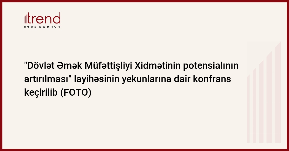 Dünya Bankı ilə Azərbaycan arasında əməkdaşlığın növbəti nümunəsi olan "Sosial Müdafiənin İnkişafı Layihəsi" çərçivəsində icra olunmuş "Dövlət Əmək Müfəttişliyi Xidmətinin (DƏMX) potensialının artırılması" layihəsi başa çatır. İyunun 20-də Bakıda layihənin yekunlarına həsr olunmuş konfrans keçirilib.