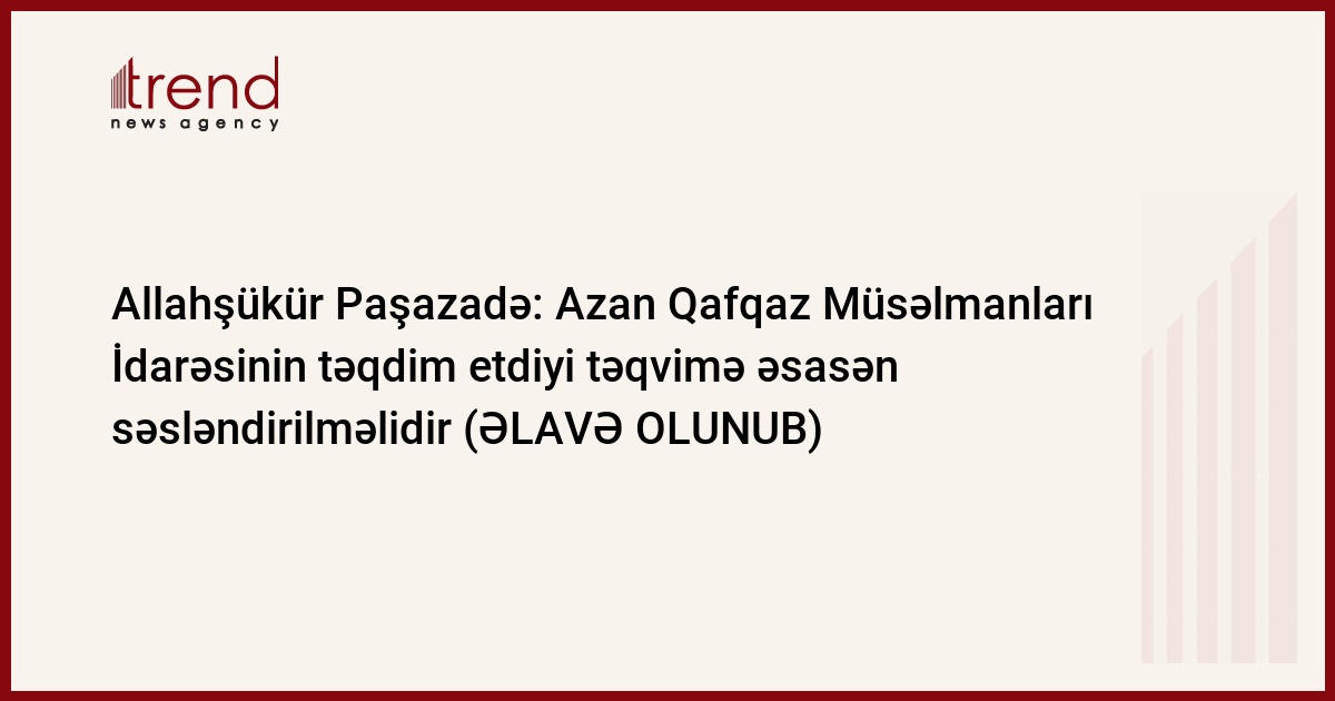 Qafqaz Müsəlmanları İdarəsinin (QMİ) sədri Hacı Allahşükür Paşazadə bildirib ki, azan idarənin təqdim etdiyi təqvimə əsasən səsləndirilməlidir.