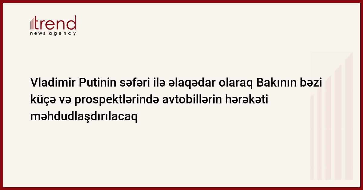 Rusiya Prezidenti Vladimir Putinin Azərbaycana səfəri ilə əlaqədar olaraq Bakının bəzi küçə və prospektlərində avtobillərin hərəkəti məhdudlaşdırılacaq.