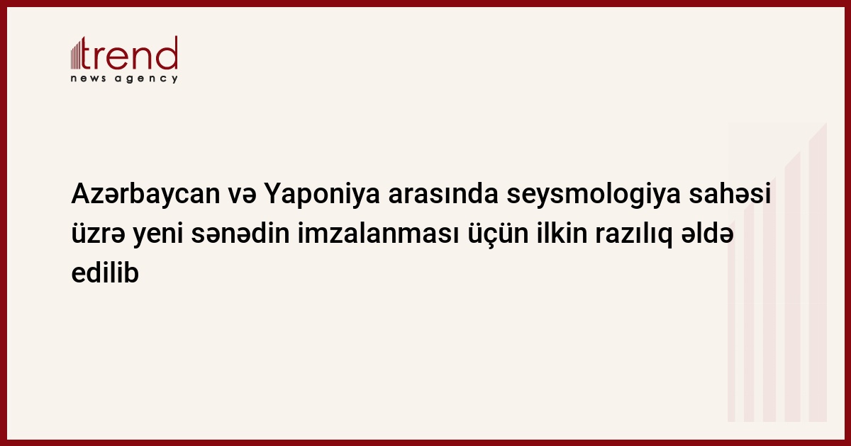 Azərbaycan Milli Elmlər Akademiyasının Respublika Seysmoloji Xidmət Mərkəzi və Yaponiyanın OYO - SHİNYEİ şirkəti arasında əlaqələrin genişləndirilməsi üçün anlaşma protokolunun imzalanması barədə ilkin razılıq əldə edilib. RSXM-in mətbuat xidmətindən Trend-ə verilən məlumata görə, AMEA-da Yaponiyanın OYO - SHİNYEİ şirkətlərinin nümayəndələri ilə görüş keçirilib.