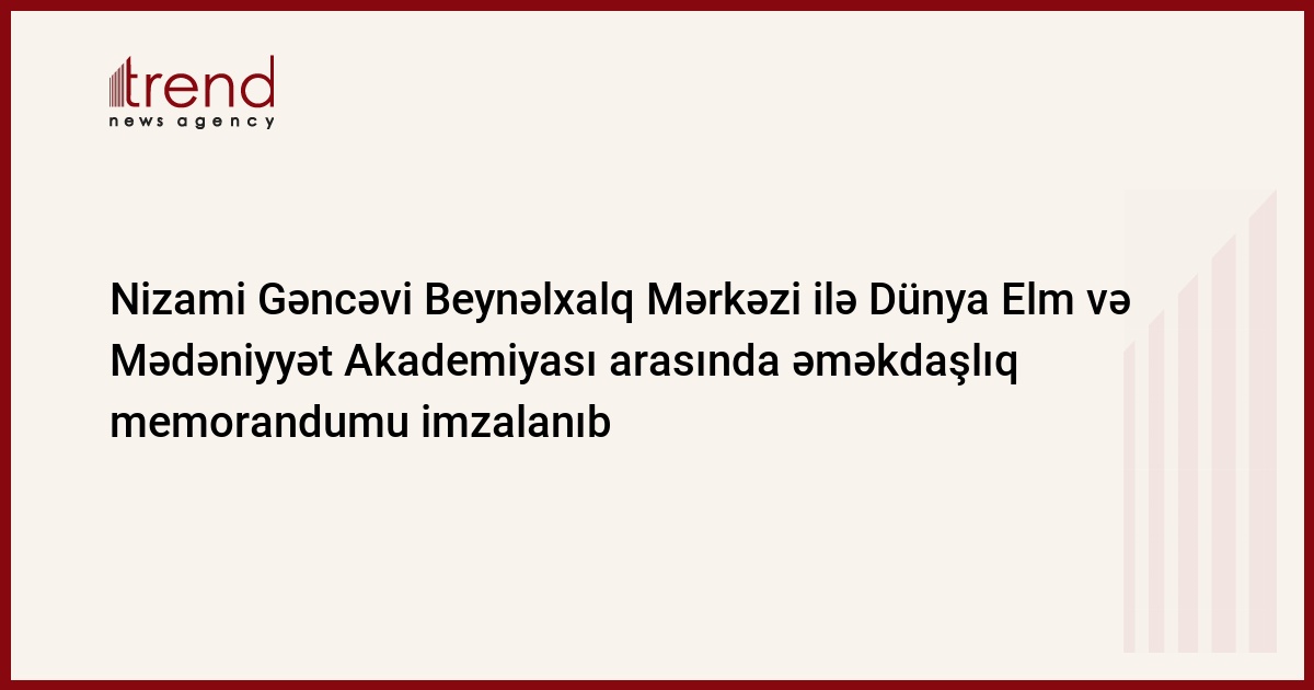 Amerika Birləşmiş Ştatlarında Nizami Gəncəvi Beynəlxalq Mərkəzi ilə Dünya Elm və Mədəniyyət Akademiyası arasında imzalanmış əməkdaşlıq memorandumu hər iki qurumun elmi və mədəni sahədə fəaliyyəti, dünyanın yeni tələbatına müvafiq olan cəmiyyətlərin davamlı inkişafı və funksionallığının təmin olunması üçün mədəniyyətlər və insanlararası dialoq və anlaşmanın qurulmasının vacibliyini bildirir.