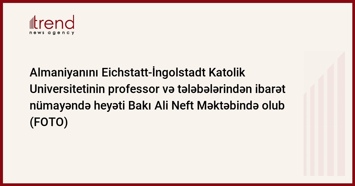 Azərbaycanda səfərdə olan Almaniyanın Eichstatt-İngolstadt Katolik Universitetinin bir qrup nümayəndəsi Bakı Ali Neft Məktəbinin professor-müəllim və tələbə heyəti ilə görüş keçiriblər.