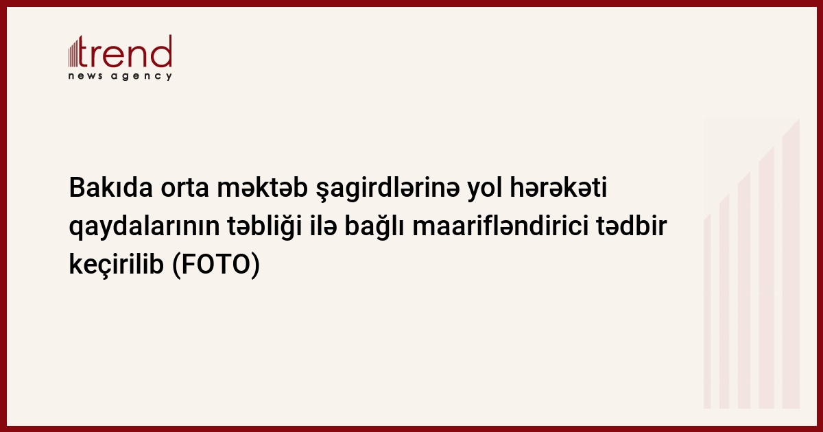 Qeyd edək ki, "Diqqət, uşaqlar!" təhlükəsizlik aylığı çərçivəsində bu kimi tədbirlərin orta məktəblərdə oktyabrın 10-dək davam etdirilməsi nəzərdə tutulur.