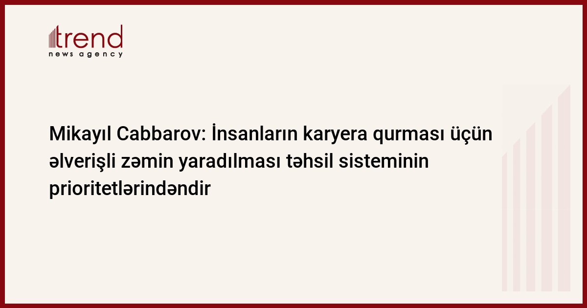 İnsanların gələcək professional karyera qurması üçün əlverişli zəminin yaradılması təhsil sisteminin prioritet hədəfləri sırasındadır. Trend-in məlumatına görə, bunu Amerika-Azərbaycan Ticarət Palatasının (AMCHAM) təşkilatçılığı ilə keçirilən işgüzar görüşdə Azərbaycanın təhsil naziri Mikayıl Cabbarov deyib.