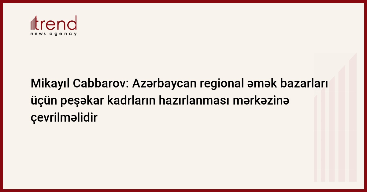 Azərbaycanın həm daxili iqtisadi tələbləri, həm də gələcəkdə regional əmək bazarları üçün peşəkar kadrların hazırlanması mərkəzinə çevrilməlidir. Trend-in məlumatına görə, bunu təhsil naziri Mikayıl Cabbarov 18 nömrəli Bakı Peşə liseyində "BOSCH" Resurs Mərkəzinin açılışında çıxışı zamanı deyib.