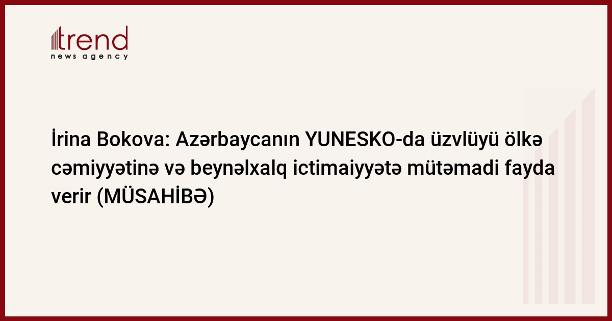 YUNESKO-nun baş direktoru İrina Bokova bu vəzifəyə ikinci dəfə seçiləndən sonra Trend-in suallarını cavablandırıb
