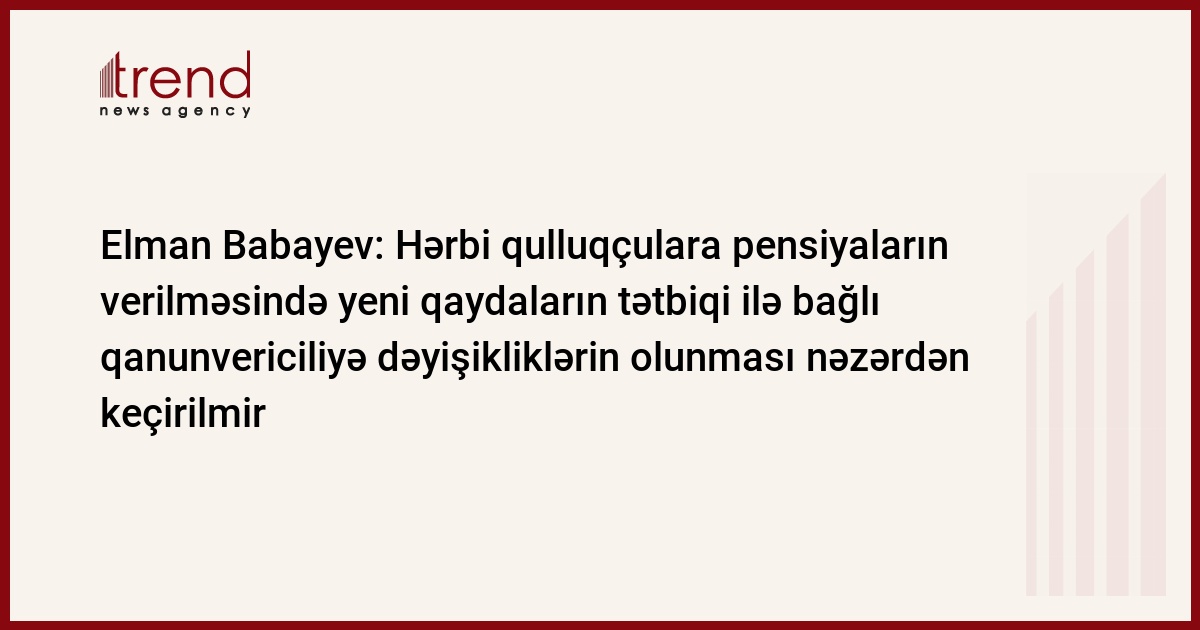 - Azərbaycanda hərbi qulluqçulara pensiyaların verilməsində yeni qaydaların tətbiq edilməsinə başlanılacağı barədə yayılan fikirlər həqiqətdən uzaqdır. Bununla bağlı hazırda qanunvericiliyə hansısa dəyişikliklərin olunması nəzərdən keçirilmir.