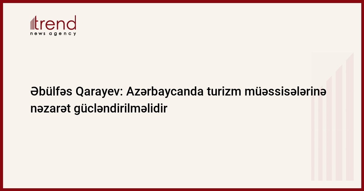 Azərbaycanda turizm müəssisələrinin öz işlərinə daha məsuliyyətli yanaşması tələb edilməli və nəzarət gücləndirilməlidir. Trend-in məlumatına görə, bu barədə mədəniyyət və turizm naziri Əbülfəs Qarayev rəhbərlik etdiyi qurumda keçirilən kollegiya iclasında bildirib.