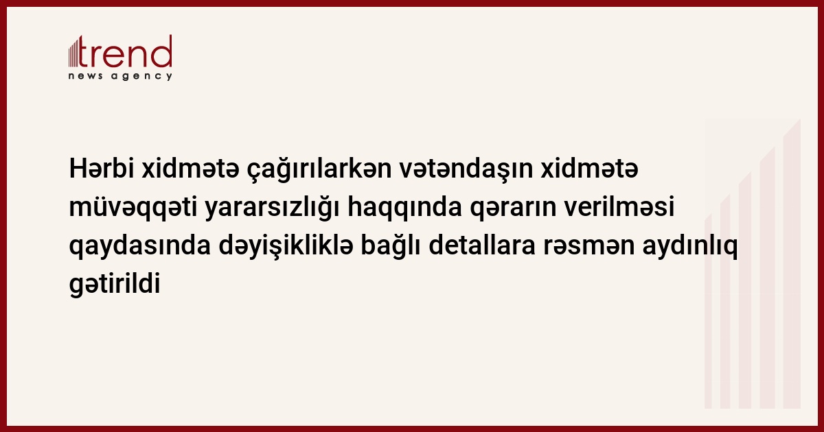 Nazirlər Kabinetinin 2008-ci il 29 fevral tarixli 59 nömrəli qərarı ilə təsdiq edilmiş "Hərbi həkim ekspertizası haqqında Əsasnamə"də 2 oktyabr 2013-cü il tarixli dəyişikliklər "hərbi xidmətə müvəqqəti yararsızdır" kateqoriyasına aid edilən şəxslərə şamil edilir.