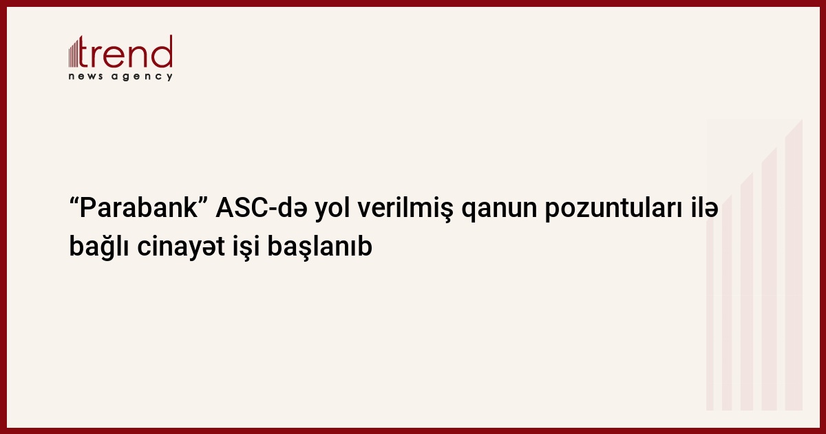 "Parabank" ASC-nin Nizami filialında yol verilmiş qanun pozuntuları barədə Daxili İşlər Nazirliyindən daxil olmuş material Baş prokuror yanında Korrupsiyaya qarşı mübarizə idarəsində araşdırılıb.