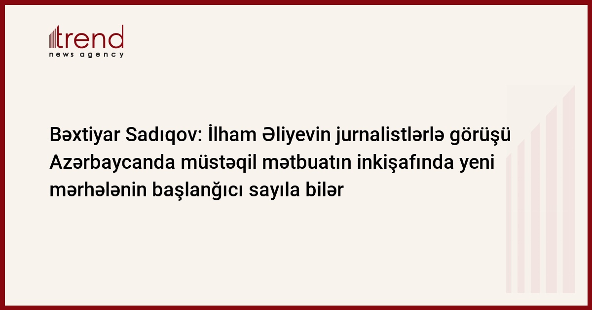 Prezident İlham Əliyevin jurnalistlərlə görüşü Azərbaycanda müstəqil mətbuatın inkişafında yeni mərhələnin başlanğıcı sayıla bilər. Bu barədə Trend-ə "Azərbaycan" qəzetinin baş redaktoru, millət vəkili Bəxtiyar Sadıqov deyib.