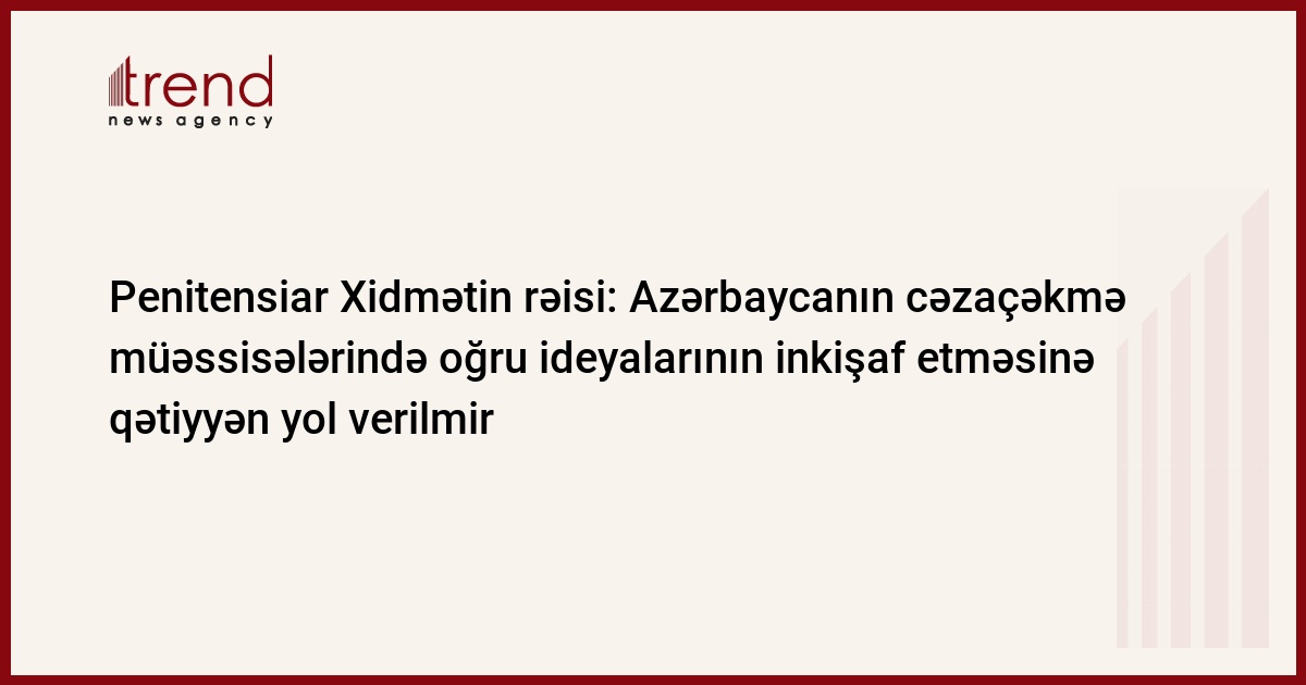 Azərbaycanın cəzaçəkmə müəssisələrində oğru ideyalarının inkişaf etməsinə qətiyyən yol verilmir. Trend-in məlumatına görə, bunu cümə axşamı jurnalistlərə Ədliyyə nazirinin müavini, Penitensiar xidmətin rəisi ədliyyə general-leytenantı Mədət Quliyev bildirib.