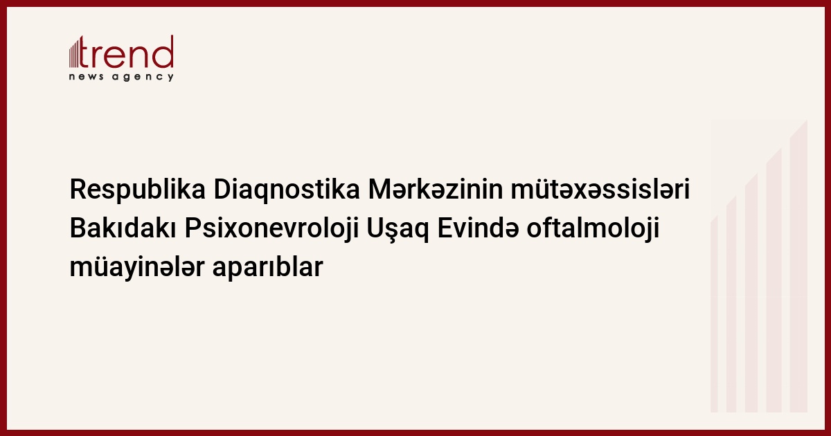 Diaqnostika Mərkəzinin mütəxəssisləri daun sindromu, autizm, fiziki və psixi geriləmə kimi xəstəliklərdən əziyyət çəkən bu uşaqlarda ən son tibbi avadanlıqlarla görmə tiri və göz dibi, uzaqdan görmə faizi və s. müayinələr aparıblar. Aşkar edilən bəzi xəstəliklər barədə Psixonevroloji Uşaq Evinin rəhbərliyinə zəruri məlumatlar verilib, xəstəlik aşkarlanan uşaqların müalicəsi üçün müvafiq addımlar atılıb.