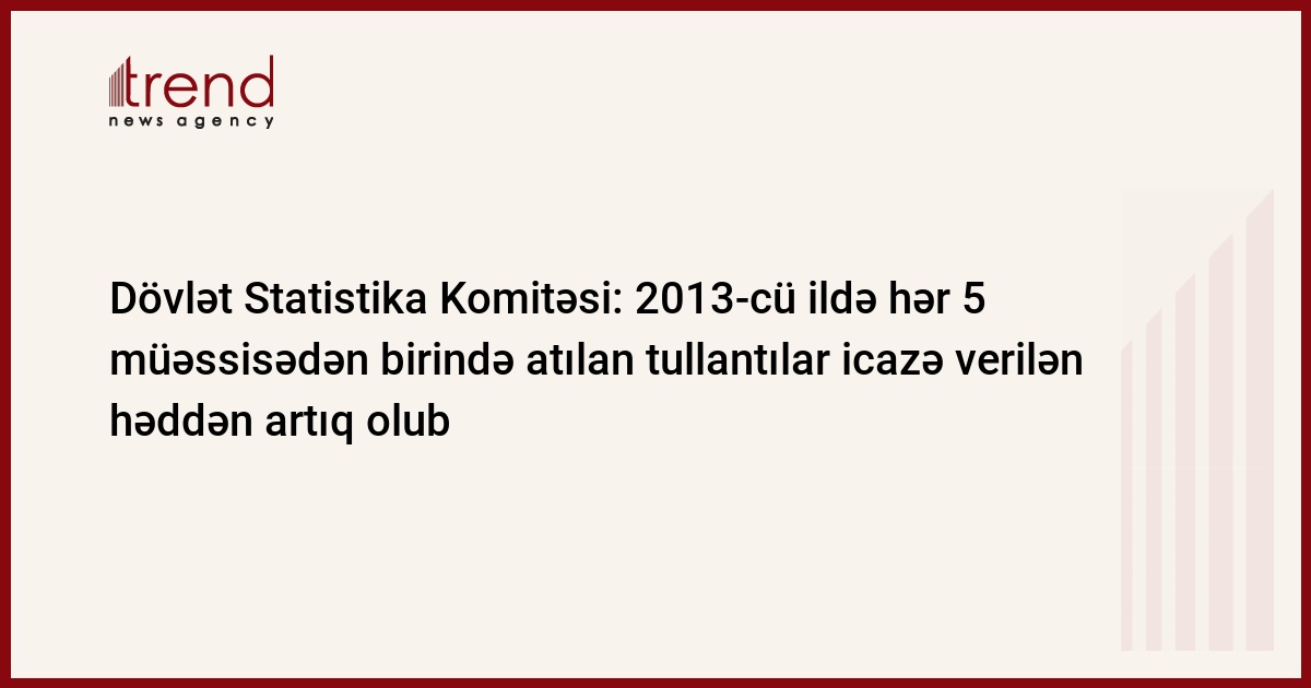 Ekologiya və Təbii sərvətlər Nazirliyinin monitorinq xidmətləri tərəfindən 2013-cü ildə 1879 müəssisədə müvafiq müayinələr aparılıb və nəticədə su hövzələrinin çirkləndirilməsi üzrə tədqiq olunmuş hər 4 müəssisədən birində və atmosfer havasının çirkləndirilməsi üzrə müayinəyə cəlb olunmuş hər beş müəssisədən birində atılan tullantıların icazə verilən həddən artıq olması qeydə alınıb.
