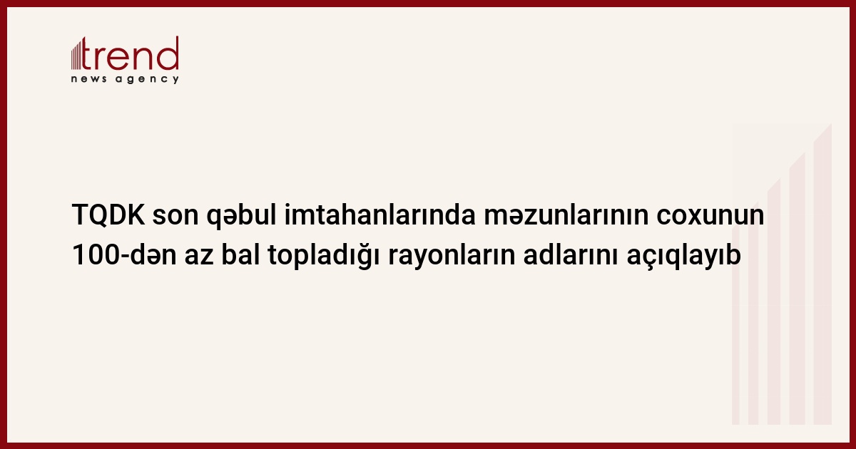 Komissiyadan Trend-ə verilən məlumata görə, 2013-cü ildə keçirilən qəbul imtahanlarında Naftalan şəhəri, Lerik, Astara, Ağsu, Sabirabad, Xaçmaz, Samux, Göygöl, Kürdəmir, Xızı, İmişli, Şabran, Qobustan, Siyəzən və Ağdaş rayonları, eləcə də Naxçıvan Muxtar Respublikasının Babək rayonunun cari ildəki məzunlarını təmsil edən abituriyentlərin 40%-dən çoxunun qəbul imtahanlarında topladığı bal 100-dən aşağı olub.