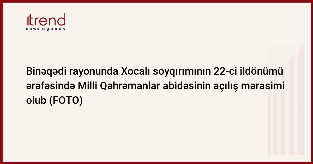 Azərbaycan xalqının qan yaddaşına həkk olunmuş Xocalı soyqırımının 22-ci ildönümü ərəfəsində fevral ayının 25-də Binəqədi rayonu Biləcəri qəsəbəsində ərazi bütövlüyümüz uğrunda canlarını fəda etmiş Milli Qəhrəmanlarımızın şərəfinə ucaldılmış abidənin açılış mərasimi keçirilmişdir.