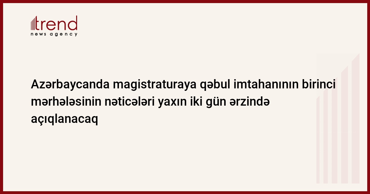 Azərbaycan ali təhsil müəssisələrinin magistraturalarına qəbul imtahanının birinci mərhələsinin nəticələri yaxın iki gün ərzində açıqlanacaq.