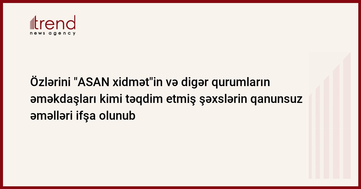 Baş Prokurorluğun mətbuat xidmətindən Trend-ə daxil olan məlumata görə, araşdırmalarla müəyyən edilib ki, özlərini "ASAN xidmət" mərkəzinin və digər dövlət qurumlarının əməkdaşları kimi təqdim etmiş "Daşınmaz əmlakın qiymətləndirilməsi xidməti", "Daşınmaz Əmlakın Qiymətləndirilməsi", "Qiymətləndirmə Xidməti", "S.F.Qiymətləndirmə" və "Kamal SF" Məhdud Məsuliyyətli cəmiyyətlərin vəzifəli şəxsləri və əməkdaşları Rauf Zülfüqarov, Vüsal Baxşəliyev, Vüsal Əmiri, Hüseyn Abdullayev, Murad Qəribov və digərləri Bərdə, Şəki, Saatlı, Salyan və digər rayon sakinlərindən torpaq sahələrinin və fərdi yaşayış evlərinə dair mülkiyyət hüququ haqqında qeydiyyat şəhadətnamələrinin verilməsi, fərdi tikinti evlərinin qiymətləndirilməsi, əmlakın qiymətləndirilməsi pasportunun hazırlanması və digər xidmətlər müqabilində müxtəlif məbləğlərdə pul tələb etməklə alıblar.