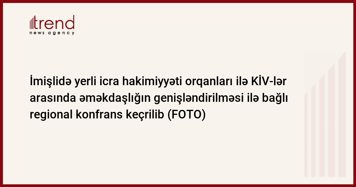 Bu gün Azərbaycan Respublikasının Prezidenti yanında Kütləvi İnformasiya Vasitələrinin İnkişafına Dövlət Dəstəyi Fondunun (KİVDF) təşkilatçılığı ilə İmişli rayonunda "Yerli icra hakimiyyəti orqanları ilə kütləvi informasiya vasitələri arasında əməkdaşlığın genişləndirilməsi" mövzusunda regional konfrans keçrilib.