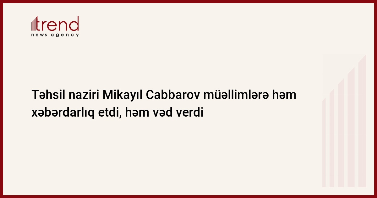 M.Cabbarov bildirib ki, hazırda məktəb müəllimlərinin işə qəbulu mərkəzləşdirilmiş imtahan vasitəsilə həyata keçirilir: "Ötən il 3286 vakant yer müsabiqəyə çıxarılmışdır. İmtahanlarda 15030 nəfər iştirak etmiş, onlardan 1281 nəfər işə qəbul olunmuşdur. Əvvəlki illərdən fərqli olaraq vakant yerlərin sayı artsa da, keçid balı aşağı salınmamış, müəllimlərin peşəkarlığı əsas meyar kimi götürülmüşdür. Bu imtahan, həmçinin müəllimlərin peşə hazırlığında olan boşluqları aşkarlamışdır. İndi müəllim hazırlığı sistemində paradoksal vəziyyət yaranmışdır. Təkcə ali təhsil müəssisələrinin hazırladıqları pedaqoji kadrların sayı real tələbatı təxminən 2 dəfə üstələyir".