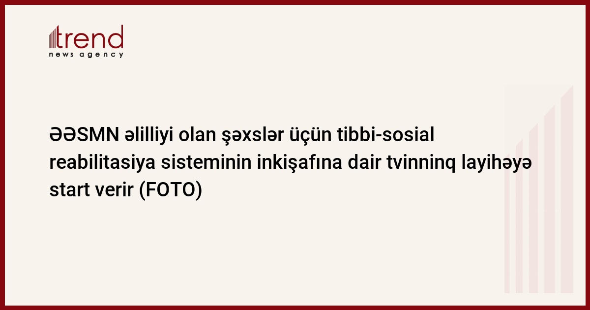 Mayın 2-də Əmək və Əhalinin Sosial Müdafiəsi Nazirliyində Aİ-nin Avropa Qonşuluq Siyasəti çərçivəsində icra olunacaq "Əlilliyi olan şəxslər üçün tibbi-sosial reabilitasiya sisteminin inkişaf etdirilməsi istiqamətində Azərbaycan Respublikasının Əmək və Əhalinin Sosial Müdafiəsi Nazirliyinə dəstək" adlı yeni Tvinninq layihəsinin təqdimatı olub.