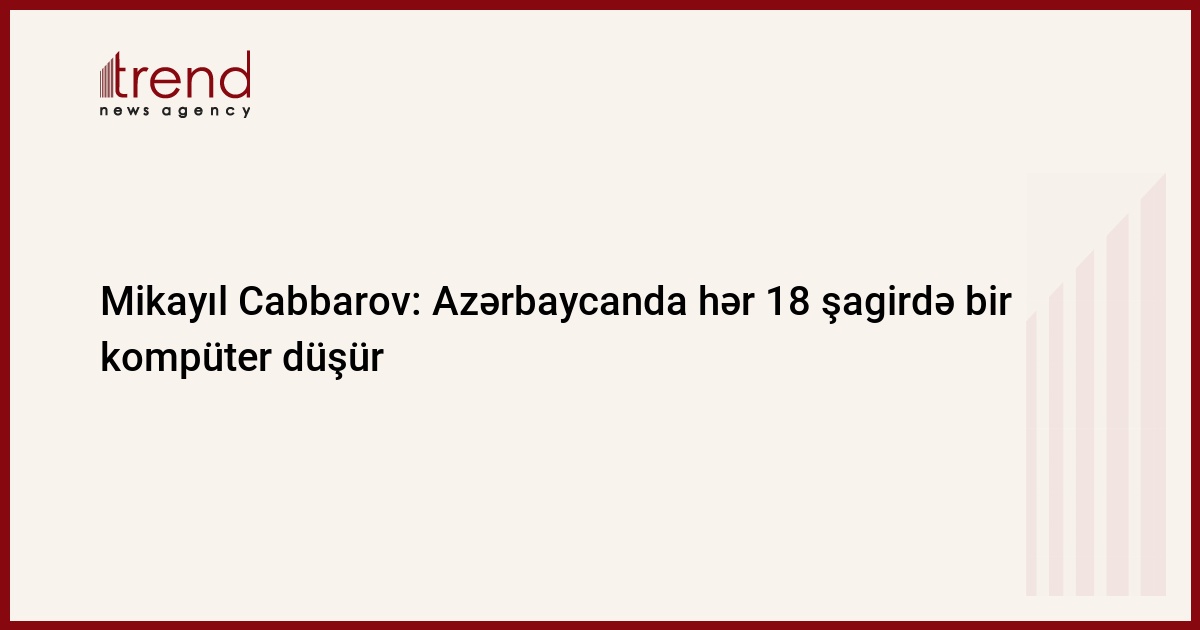 Azərbaycanda 2004-cü ildə hər 1063 şagirdə bir kompüter düşürdüsə, hazırda hər 18 şagirdə bir kompüter düşür. Trend xəbər verir ki, bunu Azərbaycanın təhsil naziri Mikayıl Cabbarov ümummilli lider Heydər Әliyevin anadan olmasının 91-ci ildönümü münasibətilə şagirdlər arasında keçirilən inşa yazı müsabiqəsinin qaliblərinin mükafatlandırılması mərasimində çıxışı zamanı deyib.