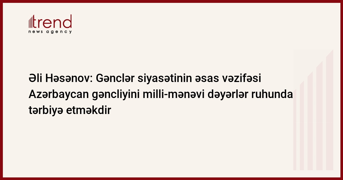 Trend-in məlumatına görə, bunu Azərbaycan Prezident Administrasiyasının İctimai-siyasi məsələlər şöbəsinin müdiri Əli Həsənov cümə axşamı Gənclər və İdman Nazirliyi yanında Gənclərlə İş üzrə İctimai Şuranın "Heydər Əliyev və Azərbaycan gəncliyi" mövzusunda keçirilən iclasında çıxışı zamanı deyib.