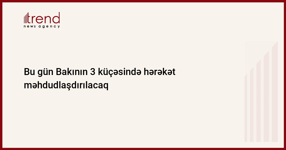 Bu gün paytaxtın 3 küçəsində hərəkət məhdudlaşdırılacaq. Bunu Trend-ə Nəqliyyat Nazirliyi "Azəryolservis" ASC-nin mətbuat xidmətinin rəhbəri Pünhan Mürsəliyev deyib.