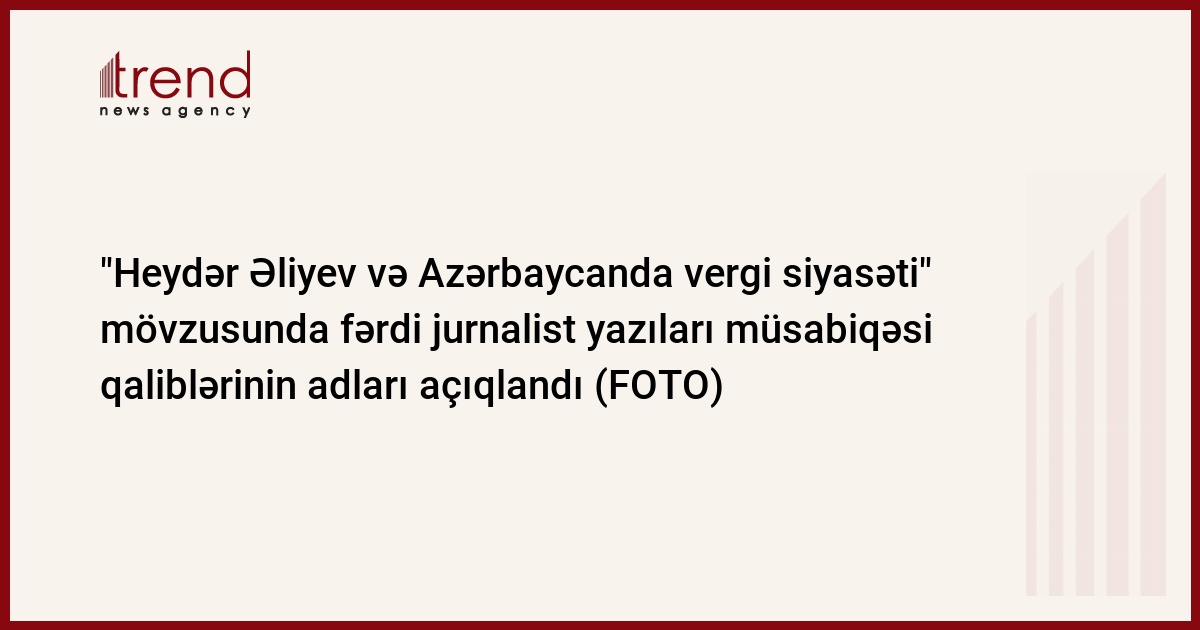 Bu gün Beynəlxalq Mətbuat Mərkəzində Azərbaycan Mətbuat Şurasının (MŞ) və Azərbaycan Vergilər Nazirliyinin "Vergilər" qəzetinin birgə təşkil etdiyi "Heydər Əliyev və Azərbaycanda vergi siyasəti" mövzusundakı fərdi jurnalist yazıları müsabiqəsi qaliblərinin mükafatlandırılması mərasimi keçirilib.