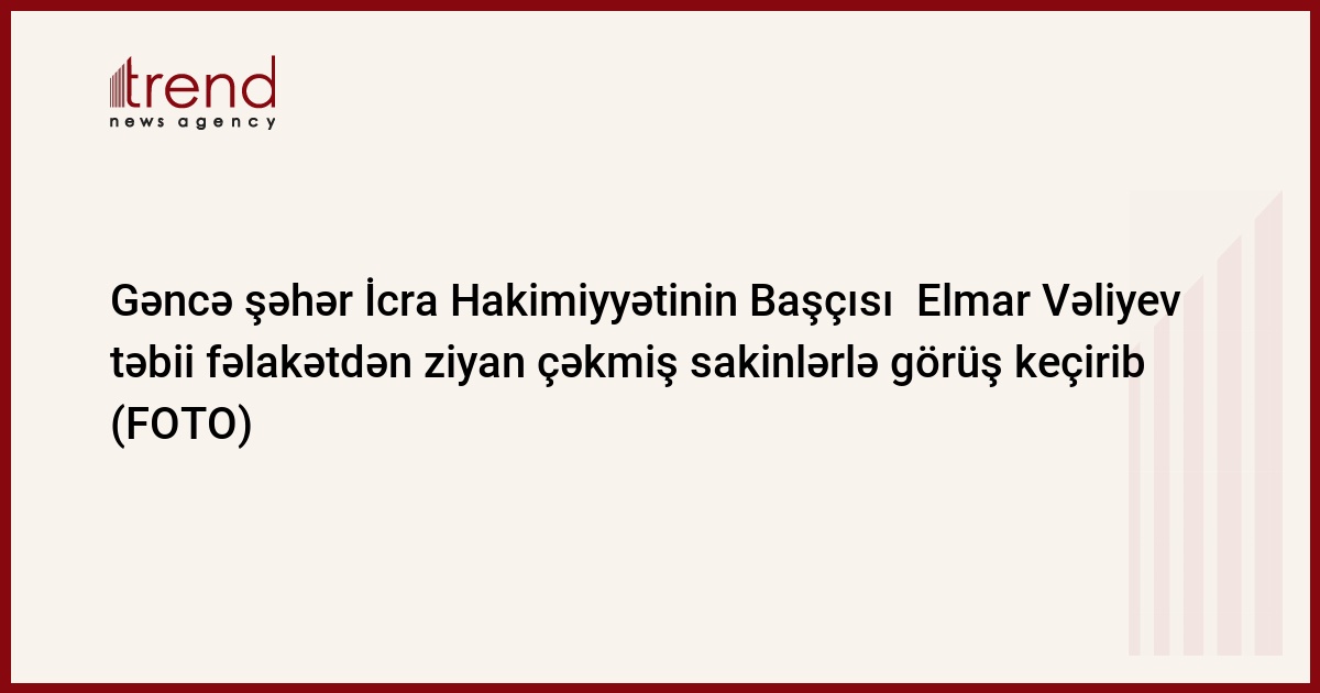 İyunun 10-da baş vermiş təbii fəlakət nəticəsində evlərinə ziyan dəymiş sakinlərlə Gəncə Şəhər İcra Hakimiyyətinin başçısı Elmar Vəliyev növbəti dəfə görüş keçirmişdir.