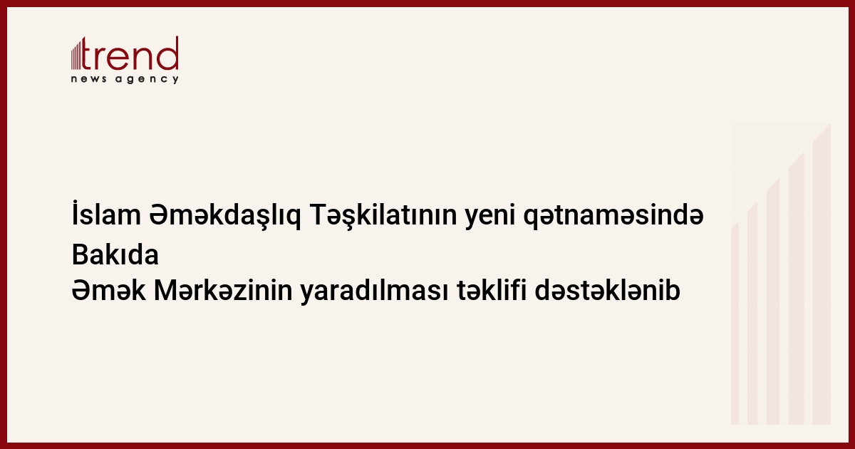 Əmək və Əhalinin Sosial Müdafiəsi Nazirliyinin İctimaiyyətlə əlaqələr şöbəsindən Trend-ə verilən məlumata görə, qətnamədə İƏT əmək nazirlərinin 2013-cü ildə Bakıda keçirilmiş ikinci konfransının iştirakçıları ilə görüşündə Azərbaycan Prezidenti cənab İlham Əliyevin irəli sürdüyü, mərkəzi qərargahı Bakı şəhərində olmaqla İƏT-in Əmək Mərkəzinin yaradılması barədə təklifi bir daha alqışlanır, bu sahədə Azərbaycanın apardığı səylərə dəstək ifadə olunur.