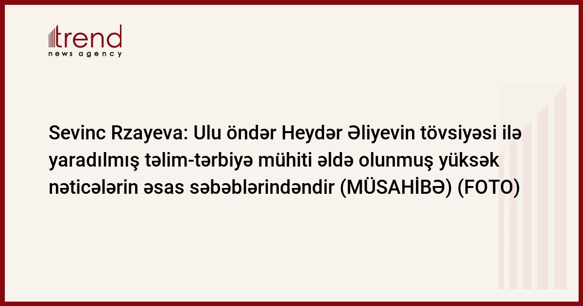 Heydər Əlivev adına Müasir Təhsil Kompleksinin direktoru, fizika-riyaziyyat elmləri namizədi, dosent Sevinc Rzayevanın Trend-ə müsahibəsi